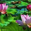 荷花:属山龙眼目、莲科,是莲属中2个物种“莲花”和“黄莲花”及众多人工培育品种的通称。是多年生水生草本花卉。地下茎长而肥厚,有长节,叶盾圆形。花期6至9月,单生于花梗顶端,花瓣多数,嵌生在花托穴内,…全部>>