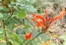 凌霄 Schum.),别名上树龙、五爪龙、九龙下海等,为紫葳科凌霄属的攀援藤本植物。其茎木质,以气生根攀附于它物之上。叶对生,为奇数羽状复叶;小叶卵形至卵状披针形,边缘有粗锯齿;顶生疏散的短圆锥花序,…全部>>
