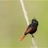 凤头鹀:属小型鸣禽,体重21-31克,体长134-175毫米。以头顶的细长羽冠为特征,雄鸟全身几乎均为黑色具蓝色光泽,两翅和尾以及尾上覆羽栗红色。雌鸟具短的褐色羽冠,上体暗橄榄褐色,…全部>>