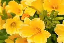 黄花菜 别名金针菜、柠檬萱草等,是阿福花科萱草属的多年生宿根性草本植物。根近肉质,中下部常有纺锤状膨大;叶7~20枚,长50~130cm,宽6~25mm;花葶长短不一,花梗较短,花多朵,…全部>>