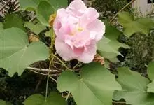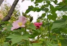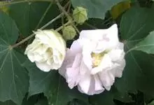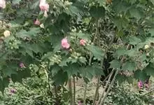木芙蓉,锦葵科木槿属落叶灌木或小乔木。小枝上有细绒毛;叶片为卵状心形,托叶为披针形,常早落;花单生,花萼为钟形,花冠初为白色或淡红色,后逐渐变为深红色;果实为扁球形,有淡黄色的毛附着。花期8到10月。…全部>>