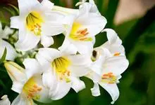 麝香百合:在中国台湾亦称铁炮百合。鳞茎球形或近球形,高2.5-5厘米;鳞片白色。茎高45-90厘米,绿色,基部为淡红色。叶散生,披针形或矩圆状披针形,两面无毛。花单生或2-3朵;花喇叭形,白色,筒外…全部>>