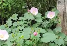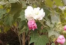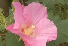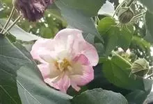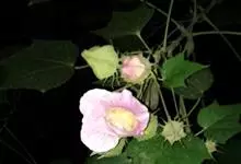 木芙蓉,锦葵科木槿属落叶灌木或小乔木。小枝上有细绒毛;叶片为卵状心形,托叶为披针形,常早落;花单生,花萼为钟形,花冠初为白色或淡红色,后逐渐变为深红色;果实为扁球形,有淡黄色的毛附着。花期8到10月。…全部>>