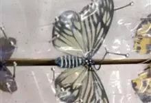 玉斑凤蝶Papilio helenus 别名白纹凤蝶,是凤蝶科凤蝶属美凤蝶亚属大型种类。雌雄同型;体翅皆黑色,后翅正面中室外有3个并列的白色斑,亚外缘有1列模糊的新月形红色斑,…全部>>