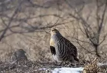 斑翅山鹑,俗称沙半鸡、沙斑鸡,体长250-310毫米,是体形略小的灰褐色鹑类。雄鸟的脸、喉中部及腹部桔黄色,腹中部有一倒“U“字形黑色斑块。与灰山鹑的区别在于胸为黑色而非栗色,喉部桔黄色延至腹部,…全部>>