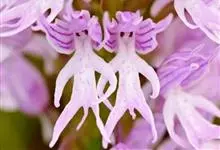 意大利红门兰,也称裸男兰、意大利男人兰,为兰科红门兰属的一种,植株高20-50厘米,花顶生,为发白的粉红色或紫色,花被片为头盔状,有暗色条纹,整朵花的造型就像一个戴着草帽的裸体男人。蒴果直立,…全部>>
