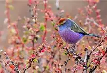 花彩雀莺:体长9-12厘米,是一种毛茸茸偏紫色的雀莺。顶冠棕色,眉纹白。尾长,羽毛松软。前额有一宽阔的眉纹淡黄色,头顶栗色或棕红色,有的具紫蓝色光泽。背灰色,腰和尾上覆羽辉紫蓝色,飞羽灰褐色。…全部>>