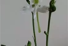 狭叶白蝶兰 Rafin.):植株高18-35厘米。块茎椭圆形或近球形,肉质。茎细长,直立,基部具3-5枚叶。叶片线形,长5-10厘米,宽3-6毫米,向上伸展,先端渐尖,基部成抱茎的鞘。总状花序具1-…全部>>