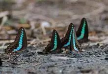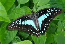 青带凤蝶Graphium sarpedon ,又名青凤蝶,是最普遍的中型凤蝶,飞行速度很快。青带凤蝶的翅膀中央有许多浅蓝色的斑点,很整齐地排列成一条直线。这些斑点由上而下逐渐变大,就像一条青色的带子。全部>>