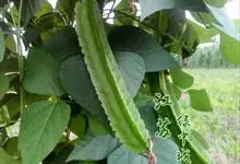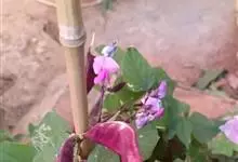 扁豆 Sweet)是豆科扁豆属多年生缠绕藤本植物,又名鹊豆、沿篱豆、藤豆等。全株几无毛,茎长可达6米。羽状复叶具3小叶;托叶基着,叶片披针形;小托叶线形,小叶宽三角状卵形,宽与长相等,…全部>>