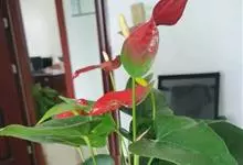 花烛,别名红鹅掌、红掌、安祖花等,为天南星科花烛属的一种多年生草本植物。其茎矮;叶互生,叶片革质,有光泽,阔心形、圆心形,先端钝或渐尖,基部深心形;肉穗花序有细长花序梗,佛焰苞深红色或橘红色,…全部>>