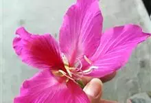 红花羊蹄甲,为豆科羊蹄甲属植物,别名艳紫荆、洋紫荆。半落叶乔木,高达了~10 m,叶草质,近圆形或阔心形,长8~13cm顶端开裂至全叶长1/4~13,裂片顶端圆。总状花序顶生或腋生,花冠紫红色,…全部>>
