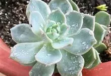 蓝石莲是景天科、拟石莲花属的多肉植物。茎部粗壮,成熟植株茎部木质化。叶片莲座型密集排列,株径不会很大,叶片相对较薄,常年绿色,表面布有白色粉末,中部凹陷,呈倒水滴状。叶尖较尖,叶缘光滑无褶皱,…全部>>