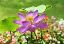 荷花:属山龙眼目、莲科,是莲属中2个物种“莲花”和“黄莲花”及众多人工培育品种的通称。是多年生水生草本花卉。地下茎长而肥厚,有长节,叶盾圆形。花期6至9月,单生于花梗顶端,花瓣多数,嵌生在花托穴内,…全部>>