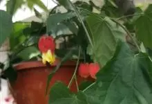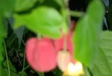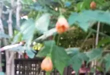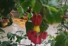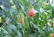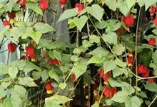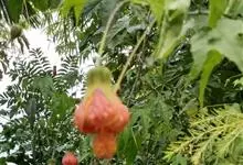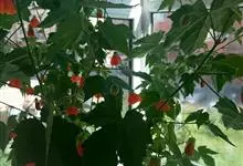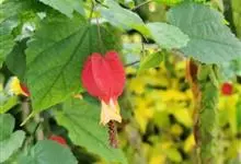 红萼苘麻是锦葵科、苘麻属常绿软木质灌木,叶绿色,长5-10厘米,心形,叶端尖,叶缘有钝锯齿,有时分裂,有细细的叶柄;叶互生,掌状叶脉;花单生于叶腋,具长梗,下垂;花萼红色,半套着大约4厘米长的花瓣,…全部>>