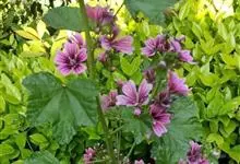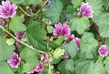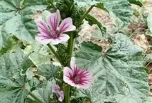锦葵:二年生或多年生直立草本,高50-90厘米,分枝多,疏被粗毛。叶圆心形或肾形,具5-7圆齿状钝裂片,两面均无毛或仅脉上疏被短糙伏毛。花3-11朵簇生,小苞片3,长圆形疏被柔毛;花紫红色或白色,…全部>>