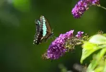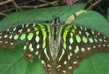 青带凤蝶Graphium sarpedon ,又名青凤蝶,是最普遍的中型凤蝶,飞行速度很快。青带凤蝶的翅膀中央有许多浅蓝色的斑点,很整齐地排列成一条直线。这些斑点由上而下逐渐变大,就像一条青色的带子。全部>>