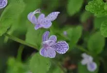 单花莸 P. D. Cantino),为唇形科、四棱草属。多年生蔓性草本,茎基部木质化,枝四方形。叶对生,叶边缘具4~6对钝锯齿,两面被柔毛和腺点。花单生叶腋,5中裂,蓝白色,有紫色条纹和斑点,…全部>>