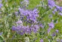 蒙古莸:为唇形科莸属落叶小灌木。常自基部即分枝,嫩枝紫褐色,圆柱形,有毛,老枝毛渐脱落。叶片厚纸质,线状披针形或线状长圆形,背面密生灰白色绒毛。聚伞花序腋生,无苞片和小苞片,花萼钟状,花冠蓝紫色。…全部>>
