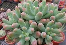 乙女心是景天科景天属的多肉植物,原产墨西哥。多年生亚灌木,茎叶肉质,株高5-30厘米。叶片簇生于茎顶,圆柱状,淡绿色或淡灰蓝色,叶先端具红色,叶长3~4厘米。花小,黄色。春秋为生长季,…全部>>