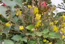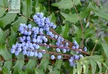 十大功劳 Fedde),小檗科十大功劳属常绿灌木植物。叶子较大且较多,呈椭圆形,绿色,表面光滑无毛,叶柄较长;花朵较小,呈多边形,黄色,花瓣对称分布,表面有绒毛;果实呈圆形,褐色,…全部>>