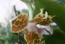 湿唇兰 Pfitz.):茎粗壮,长被宿存的叶鞘所包,上部具3-5枚叶。叶长圆形或倒卵状长圆形。花序1-6个,长达35厘米;疏生5-8朵花;花大,稍肉质,萼片和花瓣黄色带暗紫色斑点;萼片近相似,…全部>>