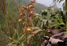 带唇兰:假鳞茎暗紫色,圆柱形,罕为卵状圆锥形,被膜质鞘,顶生1枚叶。叶狭长圆形或椭圆状披针形。花葶直立,纤细,长30-60厘米,具3枚筒状膜质鞘,基部的2枚鞘套叠;总状花序长达20厘米;花序轴红棕色,…全部>>