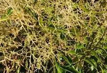南方菟丝子,为旋花科、菟丝子属的一年生寄生草本。茎缠绕,金黄色,纤细,无叶。花序侧生,少花或多花簇生成小伞形或小团伞花序,总花序梗近无;苞片及小苞片均小,鳞片状;花梗稍粗壮;花萼杯状,基部连合,长圆…全部>>