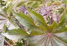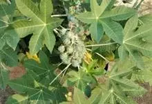 蓖麻是大戟科蓖麻属一年生粗壮草本或草质灌木。小枝、叶通常被白霜,茎直立,无毛,多液汁,绿色或稍带紫色,被白粉;叶轮廓近圆形,边缘具锯齿,叶柄粗壮,中空;蒴果卵球形或近球形,果皮具软刺或平滑;种子椭圆形,…全部>>