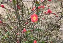 贴梗海棠 Nakai)是蔷薇科、木瓜海棠属植物。落叶灌木,高达2米,枝条直立开展,有刺。叶片卵形至椭圆形,稀长椭圆形,长3-9厘米,宽1.5-5厘米。花先叶开放,3-5朵簇生于二年生老枝上。…全部>>
