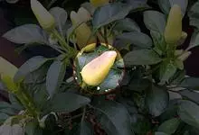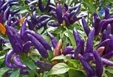 观赏辣椒,观赏辣椒根系发达,茎直立,茎部木质化,分枝能力强,分枝习性为双叉状分枝和三叉分枝。小果类型的植株高大,分枝多,大果类型的则相反。单叶互生,全缘,卵圆形,叶片大小、色泽与青果的大小色泽有相关性。…全部>>