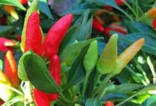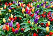 五色椒又名朝天椒,五彩辣椒,为辣椒 变种,味涩。属茄科多年生半木质性植物,常作一年生栽培;江苏沭阳一带有不少花农种植,其株高30厘米—60厘米,分枝多、茎直立,单叶互生;花白色,开花期5月初—7月…全部>>