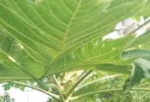 番木瓜,番木瓜科番木瓜属的常绿软木质小乔木,高达10米,具有乳汁;茎不分枝或有时于损伤处分枝;叶大且聚生于茎顶,近似盾形,叶柄中空;花单性或两性,有些品种雄株偶尔生两性花或雌花,…全部>>