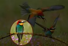 蓝颊蜂虎:是蜂虎科、蜂虎属的鸟类,共有2个亚种。体长27-33厘米,翼展46-49厘米,体重38-50克。嘴形细长而下弯,先端尖,…全部>>