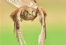 红隼:是隼科、隼属的小型猛禽之一。体重173-335克,体长305-360毫米。翅狭长而尖,尾亦较长,外形和共同爪隼非常相似。雄鸟头蓝灰色,背和翅上覆羽砖红色,具三角形黑斑;腰、尾上覆羽和尾羽蓝灰色,…全部>>