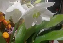 南美水仙是石蒜科、南美水仙属的多年生草本植物,株高约80厘米;叶基生,椭圆形,浓绿色;花亭肉质。顶生伞形花序,着花3到6朵,花冠筒圆柱形,中央生有一个副花冠,花瓣开展呈星状。花为纯白色,…全部>>