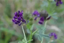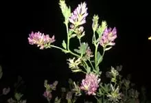 紫苜蓿,豆科苜蓿属多年生宿根草本植物,茎直立、丛生或匍匐,呈四棱形,多分枝;托叶较大,卵状披针形,小叶片呈倒卵状长圆形;花朵是成族状的总状花序;花梗呈尊钟状,花冠紫色花;果实螺旋形,…全部>>