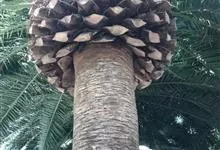 加那利海枣是棕榈科刺葵属植物,单干直立,自然高度可达18米,干径50-90厘米,幼时被以枯叶,老树则叶柄基部残存。具波状叶痕,羽状复叶,顶生丛出。雌雄异株,肉穗花序自叶间抽出,长可达2米。浆果,…全部>>