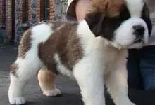 圣伯纳犬,别名巴里汉德,属于大型工作犬,肩高约65~90厘米,体重约50~90千克。圣伯纳犬身体强壮,被毛红褐色和白色相间,头圆而宽大。颈部强壮,胸宽深,背直。前肢长直,腕关节略前倾,后肢腿骨粗壮,…全部>>