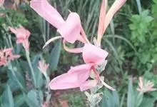 粉美人蕉:是一种球根草本植物。根茎延长,株高1.5-2米;茎绿色。叶片披针形;总状花序疏花,单生或分叉,稍高出叶上;苞片圆形,褐色,花黄色,无斑点;有多种园艺栽培品种,颜色从粉、橙红色及具带红色斑点…全部>>