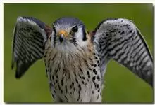 红隼:是隼科、隼属的小型猛禽之一。体重173-335克,体长305-360毫米。翅狭长而尖,尾亦较长,外形和共同爪隼非常相似。雄鸟头蓝灰色,背和翅上覆羽砖红色,具三角形黑斑;腰、尾上覆羽和尾羽蓝灰色,…全部>>