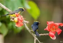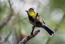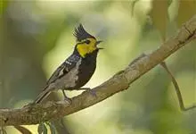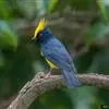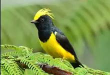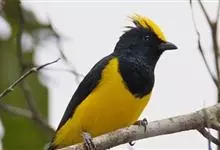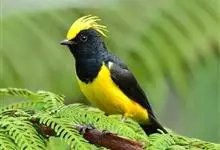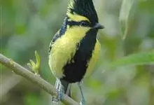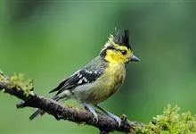 冕雀:共有4个亚种。体长20-21厘米,体重34-49克。具蓬松的黄色长型冠羽。雌鸟似雄鸟,但喉及胸深橄榄黄色,上体沾橄榄色。不会被误认的体大的黄色及黑色山雀。混群栖于原始林及次生林的林冠层,…全部>>
