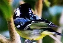 黄腹山雀是雀形目山雀科山雀属鸟类。虹膜褐色或暗褐色;嘴蓝黑色或灰蓝黑色;头、喉胸斑黑色,颊斑、颈后斑白色;上体蓝灰色,腰银白色;翼具两排白色点斑;下胸、腹鲜黄色;尾黑色,…全部>>