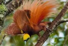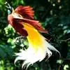 大极乐鸟是极乐鸟属中最大的鸟种。成年雄鸟体长可达到43厘米,雌性可达35厘米。雄鸟的额、颊、喉等墨绿色;头、颈黄色;上体暗赤栗色;腹部葡萄红色,胁部有长饰羽,其基部橙黄,中部黄色,…全部>>