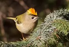 戴菊小型鸟类,体长9~10厘米。上体橄榄绿色。头顶中央柠檬黄色或橙黄色羽冠,两侧有明显的黑色侧冠纹,眼周灰白色。腰和尾上覆羽黄绿色,两翅和尾黑褐色,尾外翈羽缘橄榄黄绿色,初级和次级飞羽羽缘淡黄绿色,…全部>>