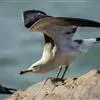 灰翅鸥,夏羽头、颈、腰、尾白色;肩、背和翅上覆羽鸽灰色。冬羽和夏羽相似,但头和颈具淡褐色纵纹,有时扩展至上胸。嘴黄色,下嘴先端具红斑;幼鸟嘴黑色。脚粉红色。栖息于海岸:悬岩,海滨沙滩于近海海岛上。常…全部>>