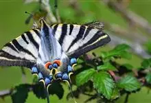 中华虎凤蝶是鳞翅目凤蝶科虎凤蝶属昆虫。双翅颜色为黄底黑纹,色如虎皮;雌、雄斑纹相同,但雌蝶的黄色往往要略深一些;后翅外缘呈波浪状,长有较短的尾突;除翅外,整体黑色,…全部>>