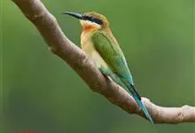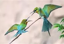 蓝颊蜂虎:是蜂虎科、蜂虎属的鸟类,共有2个亚种。体长27-33厘米,翼展46-49厘米,体重38-50克。嘴形细长而下弯,先端尖,…全部>>