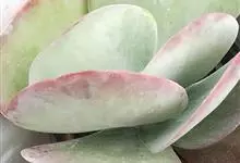 唐印为景天科伽蓝菜属的多年生肉质草本植物。植株中型,株高50厘米,宽20厘米,多分枝;叶片肉质,对生,卵形,全缘,先端钝圆,叶片淡绿色至灰绿色,表面被有厚厚的白粉,光照充足时,叶缘呈红色;圆锥花序,…全部>>