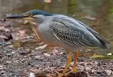 绿鹭:是鹳形目鹭科绿鹭属鸟类。体型小,头顶黑,枕冠亦黑色,上体蝉灰绿色,下体两侧银灰色;前额至后枕及冠羽墨绿色,眼后有一白斑,颊纹黑色;颚纹白色,后颈、颈侧和体侧烟灰色;背部披灰绿色矛状长羽,…全部>>